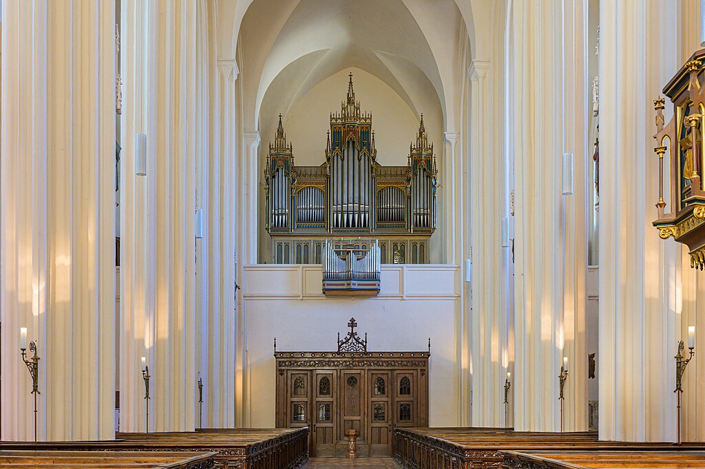 III. POSITIV (C – f3) 54 TOETSEN: Bourdon 8′, Quintade 8′, Prinzipal 4′, Oktav 2′, Larigot 1 1/3′, Sesquialtera 2 2/3′, Cimbel 1′, Krummhorn 8′.