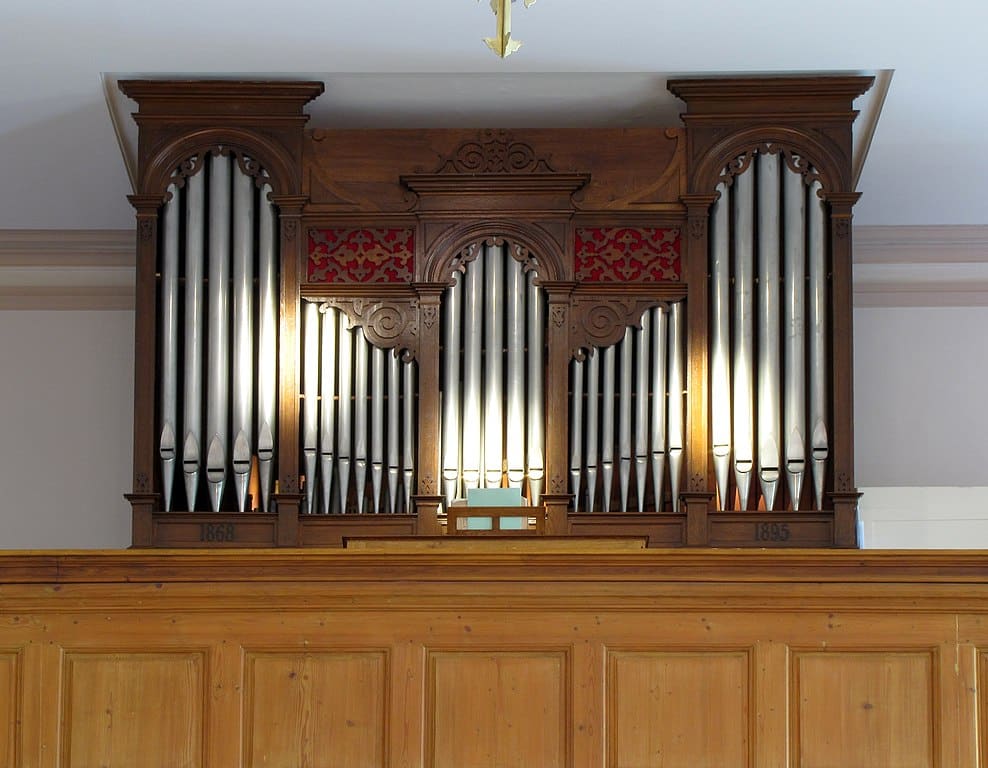 Grand Orgue (C-g3): 56 toetsen Principal 8′, Flûte Majeure 8′, Prestant 4′, Nasard 2 2/3′ – 1969, Octave 2′, Tierce 1 3/5′ – 1969, Mixture 3 rangs.