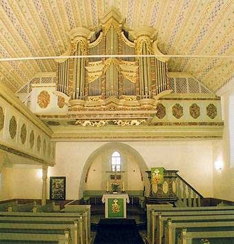 Hauptwerk: C – c3 Principal 8′, Hohlpfeiff 8′, Viola di Gamba 8′, Quintatön 8′, Octav 4′, Flöth 4′, Quint 3′, Octav 2′, Mixtur 3 fach, Trompet 8′ (gedeeld), Clarin 4′.