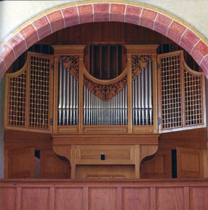 BRUSTWERK: C – g3 (56 TOETSEN) Bourdon 8′, Praestant 4′, Rohrflöte 4′, Nasard 2 2/3′ – Vorabzug aus Sesquialter, Doublette 2′, Sifflet 1′ – Vorabzug aus Zimbel, Sesquialter 2 fach (2 2/3′), Zimbel 3 fach (1′), Krummhorn 8′, Tremulant.
