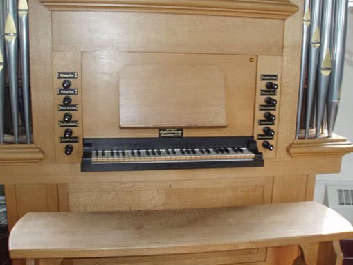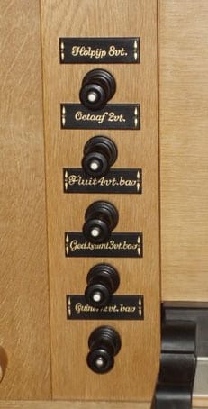 De dispositie van het Bakker & Timmenga-orgel: (1982; in 2008 of 2009 werd het orgel naar de galerij verplaatst)