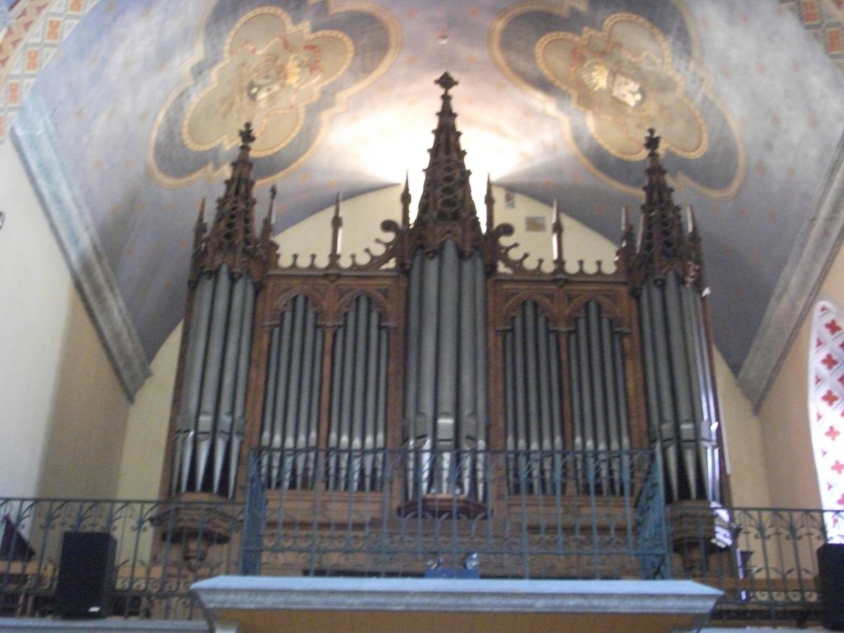 Grand Orgue: C – f3 (54 toetsen) Bourdon 16′, Montre 8′, Bourdon 8′, Flûte 8′, Prestant 4′, Bourdon 4′, Nazard 2 2/3′, Doublette 2′, Tierce 1 3/5′, Plein Jeu 4 rangs, Trompette 8′, Voix Humaine 8′, Clairon 4′.