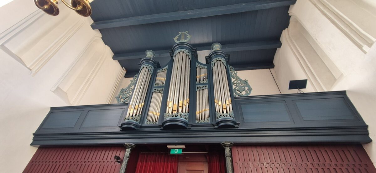 MANUAAL (C – c3) 49 TOETSEN: Bourdon 16′, Prestant 8′, Gamba 8′, Holpijp 8′, Octaaf 4′, Fluit 4′, Fluit 2′, Trompet 16′ – 1982.