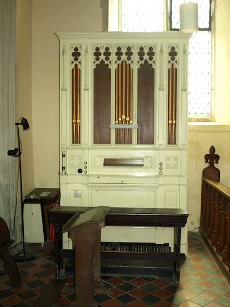 Barrel Organ uit 1835, gebouwd door Theodore Charles Bates. In 1878 is het omgebouwd door John Rayson en voorzien van een klavier. Het instrument is geheel mechanisch en heeft een sleeplade.