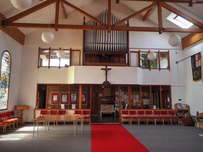GREAT (C – g3) 56 TOETSEN: Open Diapason 8′, Rohr Flote 8′, Dulciana 8′, Principal 4′, Harmonic Flute 4′, Fifteenth 2′.