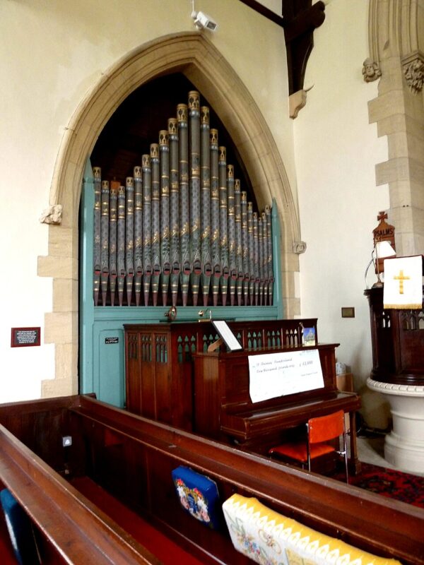 Jardine & Co bouwde in een onbekend jaar een nieuw orgel met gedecoreerde frontpijpen voor de Church of Saint Thomas in Thurstonland (Yorkshire).