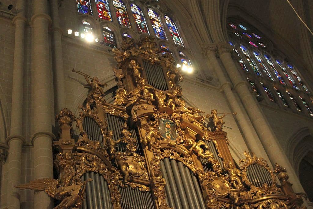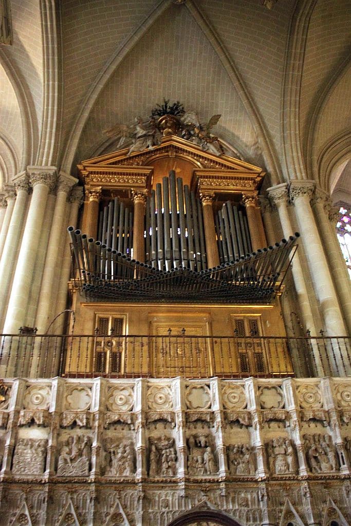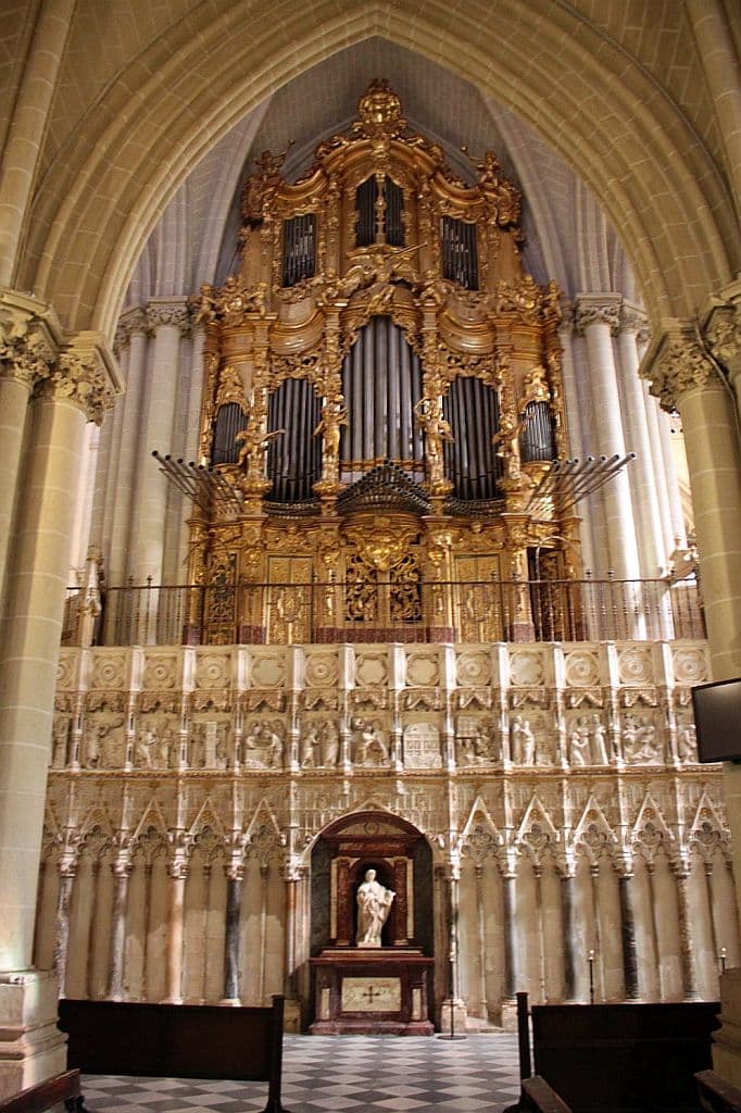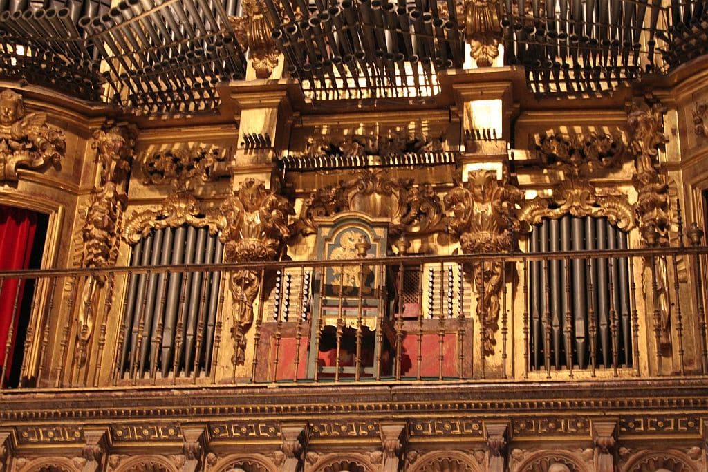 Organo Mayor: C-g3 Flautado de 26 16′, Flautado de 13 8′, Violón 8′, Flauta Dulce 8′ (discant), Flauta en Ecos 8′ (discant), Octava 4′, Docena 2 2/3′, Quincena 2′, Lleno 8 hileras, Lleno y Címbala 8 hileras, Trompeta Imperial 32′ (discant), Trompeta 16′ (B/D), Trompeta Real 8′ (B/D), Trompeta 4′ (B/D), Trompeta 2′ (bas).