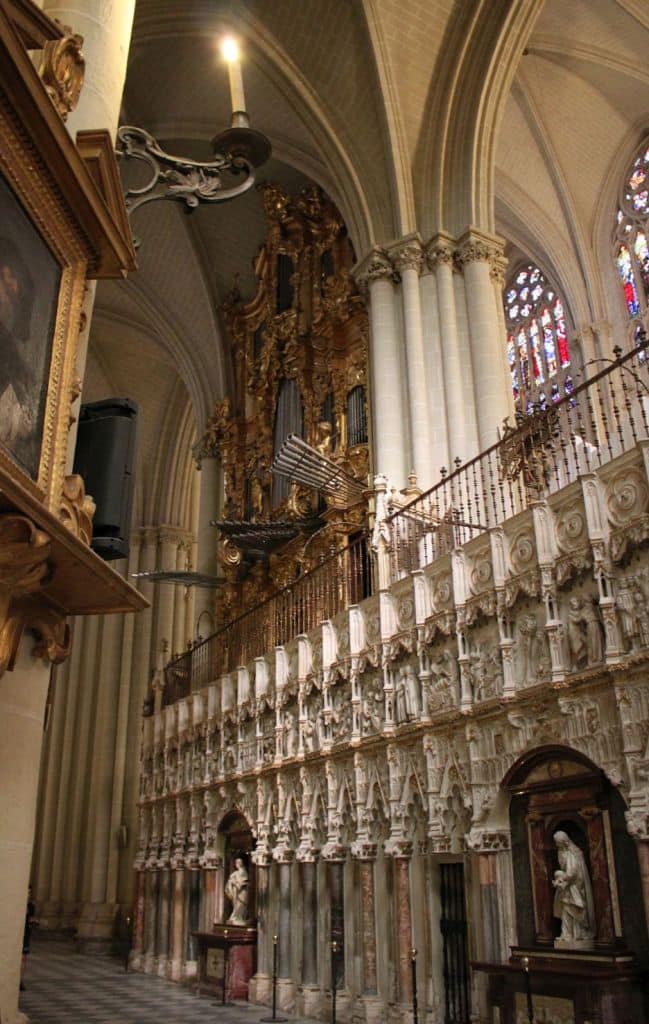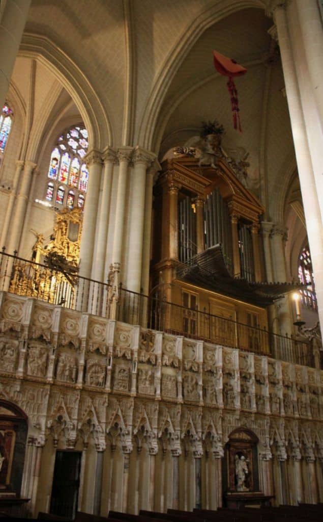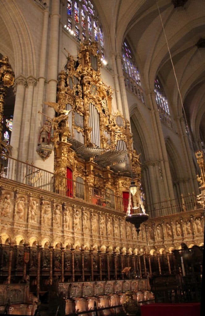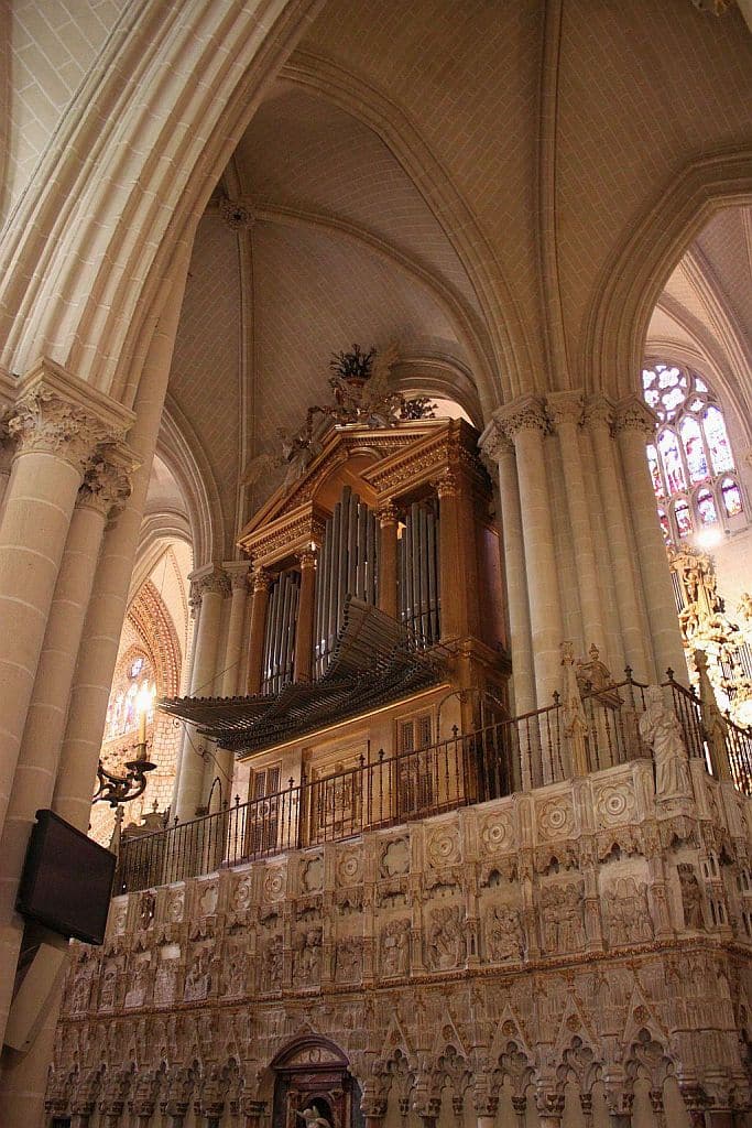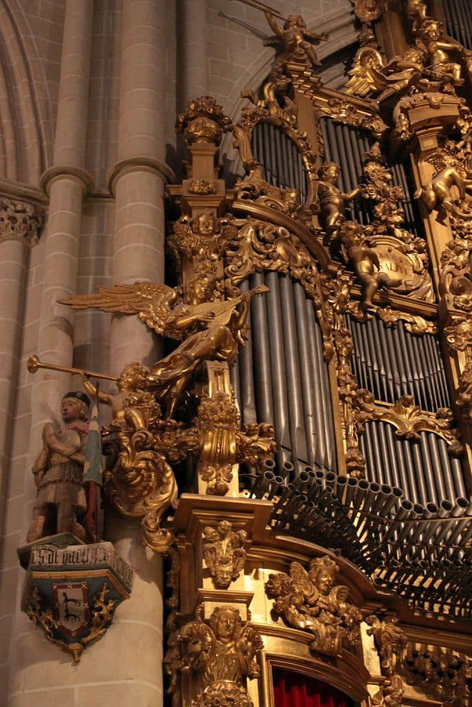 Organo Mayor: C-g3 Flautado de 26 16′, Flautado de 13 8′, Violón 8′, Flauta Dulce 8′ (discant), Flauta en Ecos 8′ (discant), Octava 4′, Docena 2 2/3′, Quincena 2′, Lleno 8 hileras, Lleno y Címbala 8 hileras, Trompeta Imperial 32′ (discant), Trompeta 16′ (B/D), Trompeta Real 8′ (B/D), Trompeta 4′ (B/D), Trompeta 2′ (bas).