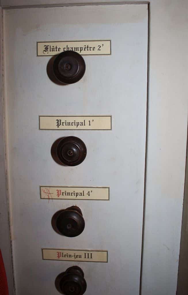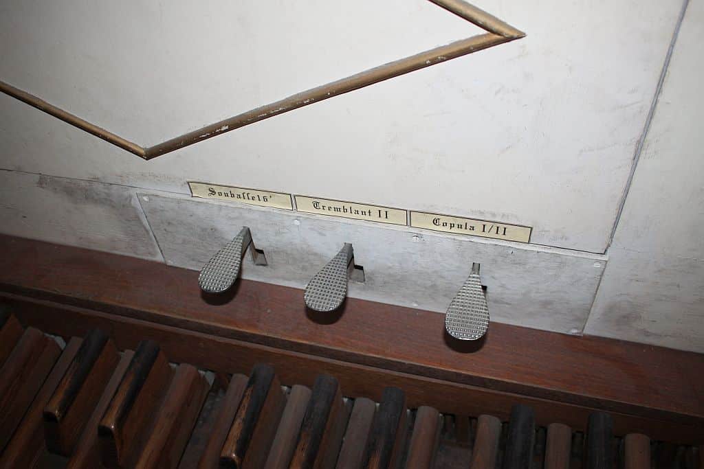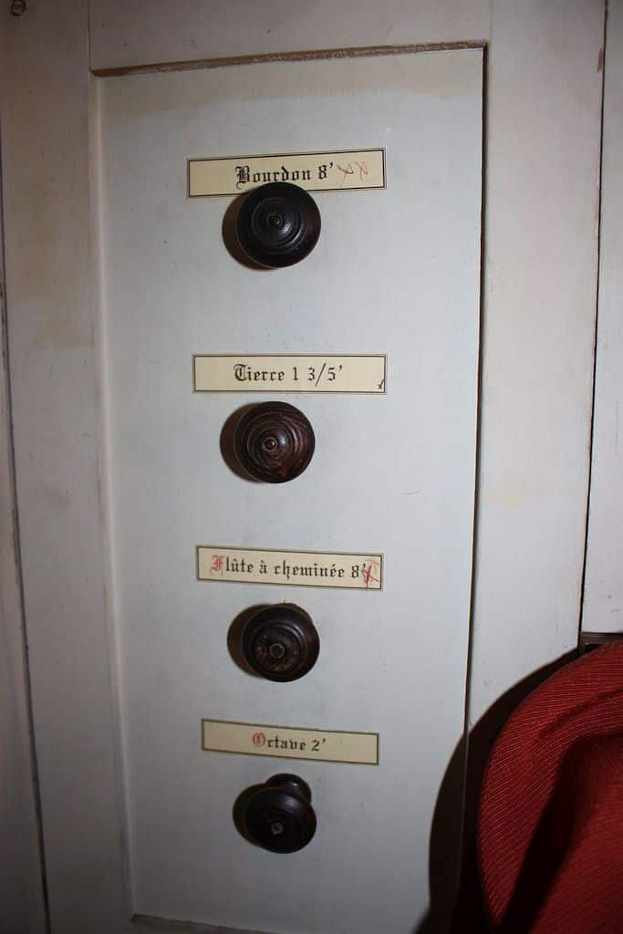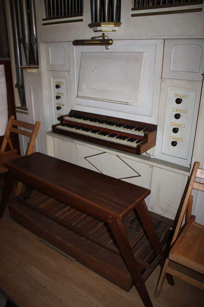 Positif: C – g3 (56 toetsen) Bourdon 8′, Flûte à Cheminée 4′, Octave 2′, Tierce 1 3/5′, Tremblant.