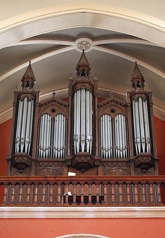 Grand-Orgue: C – g3 (56 toetsen) Bourdon 16′, Montre 8′, Bourdon 8′, Kéraulophone 8′, Prestant 4′, Quinte 2 2/3′, Doublette 2′, Tierce 1 3/5′, Trompette 8′.