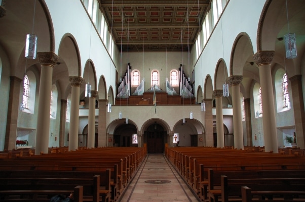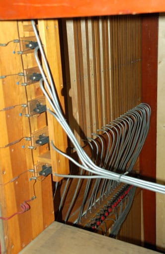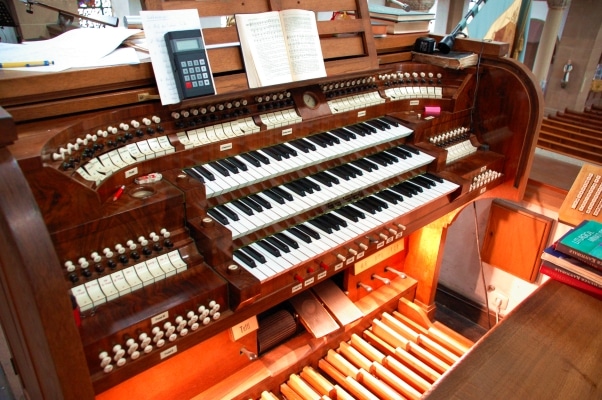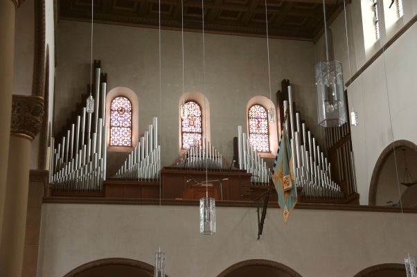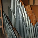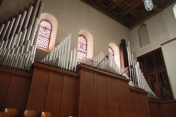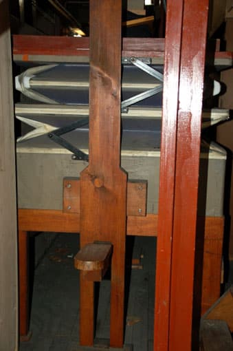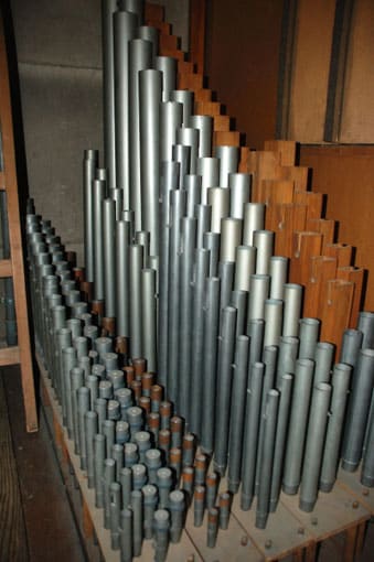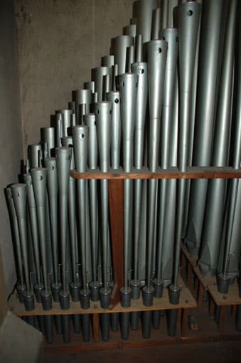 III. Manual mit eigenem Windschöpfer und pneumatischem Spieltisch im Orgelinneren.