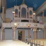 I: Borduna 16′, Principal 8’Δ (C–e0), Dubbelflöte 8′, Oktava 4′, Quinta 3′, (Oktava 2′)≈Fl.dolce 4′, (Trumpet 8′)≈Gamba 8′ (= IIs Salicional 8′), Manualkoppel, Oktavkoppel, ±Forte.