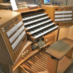 RÜCKPOSITIV (C – a3) 58 TOETSEN: Kleinpraestant 8′, Metallgedackt 8′, Weidenpfeife 8′, Oktave 4′, Flötgedackt 4′, Gemsnasat 2 2/3′, Kleinoktave 2′, Waldflöte 2′, Sifflöte 1′, Terznone 2 fach (1 3/5′ + 8/9′), Scharfmixtur 5-6 fach (1′), Musette 8′, Vox Humana 8′, Schalmey 4′, Tremulant.