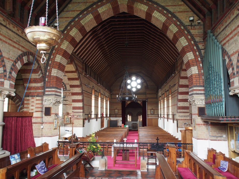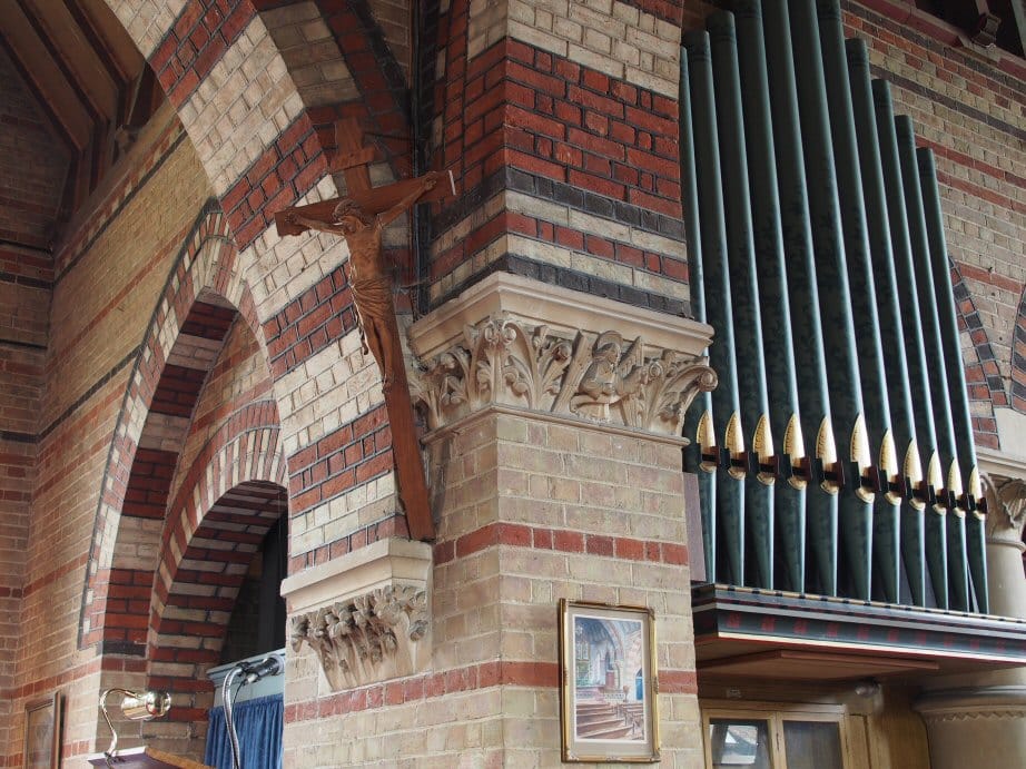 Great: C – f3 Open Diapason 8′, Stopd Diapason 8′, Gamba 8′ TC, Dulciana 8′ (grooved), Principal 4′, Flute 4′ TC.