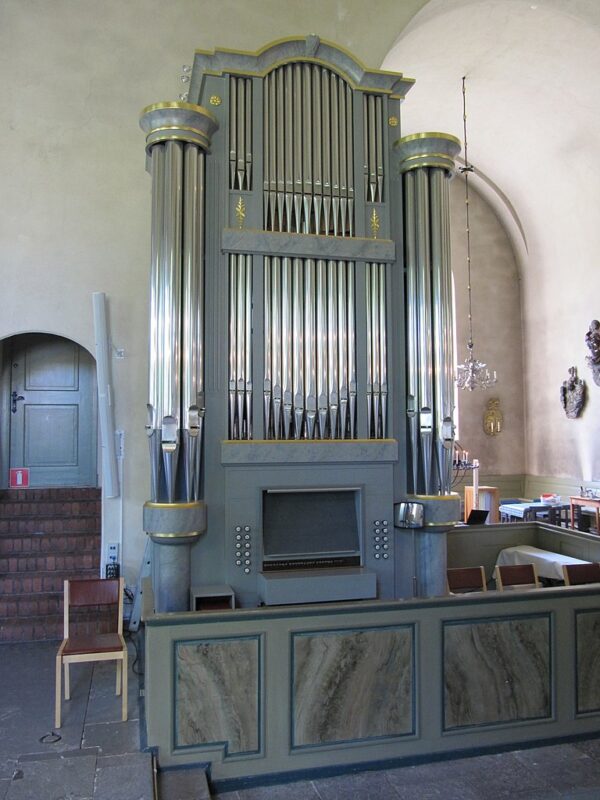 SVÄLLVERK: Dubbelflöjt 8′, Salicional 8′, Flûte Octaviante 4′, Voix Céleste 4′, Waldflöjt 2′, Cornett 2 chor.