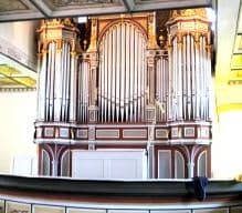 Schwellwerk: (C-f3) Geigen Principal 8 Flöte Dolce 8 Aeoline 8 Vox Celeste 8 Gemshorn 4 Flöte 4 Blockflöte 2 Oboe 8 |