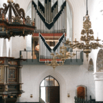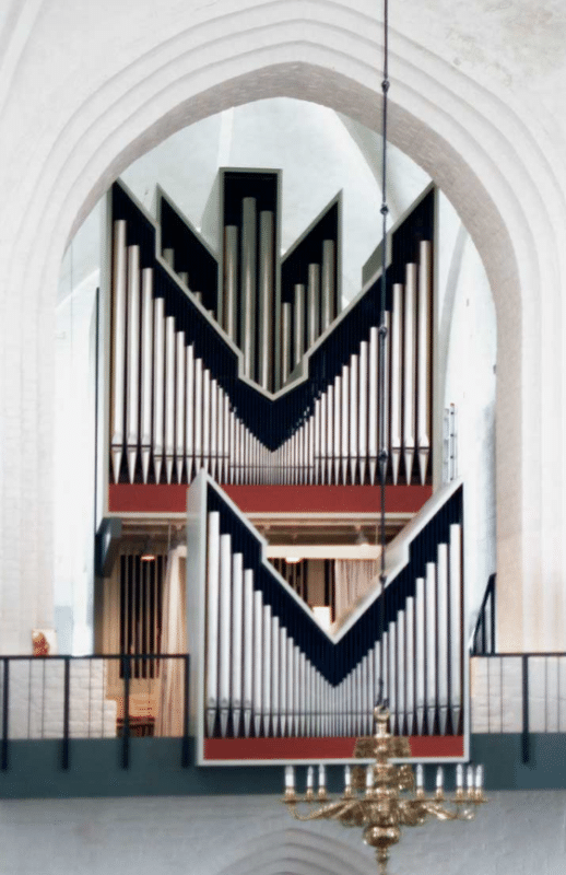 SVELLEÆRK (C – a3) 58 TOETSEN: Bordun 16′, Traversfløjte 8′, Gedakt 8′, Viola di Gamba 8′, Vox Celeste 8′, Fugara 4′, Hulfløjte 4′, Nasat 2 2/3′, Octavin 2′, Terts 1 3/5′, Piccolo 1′, Mixtur 5 kor, Cymbel 3 kor, Fagot 16′, Trompet 8′, Vox Humana 8′, Clairon 4′, Tremulant.