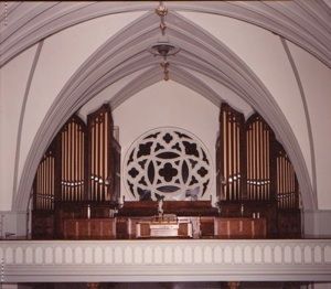 Great Organ: Open Diapason 8′, Flute 8′, Dulciana 8′, Octave 4′, Open Flute 4′ – 1968, Fifteenth 2′, Nineteenth 1 1/3′ – 1968, Mixture 3 ranks, Trumpet 8′.