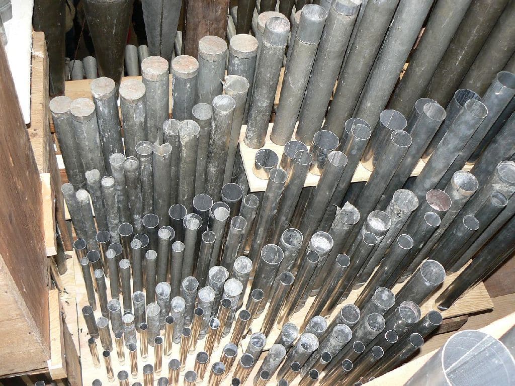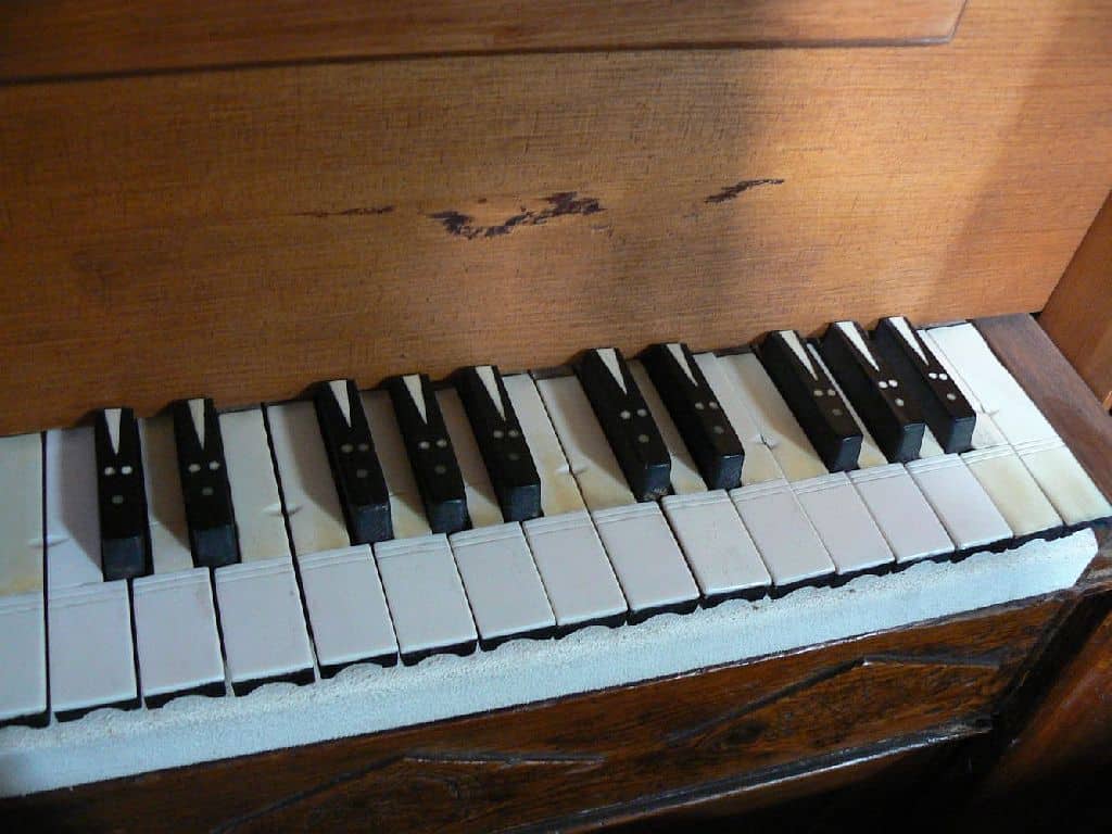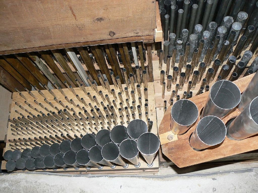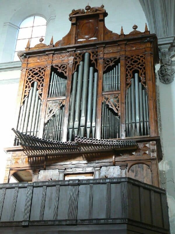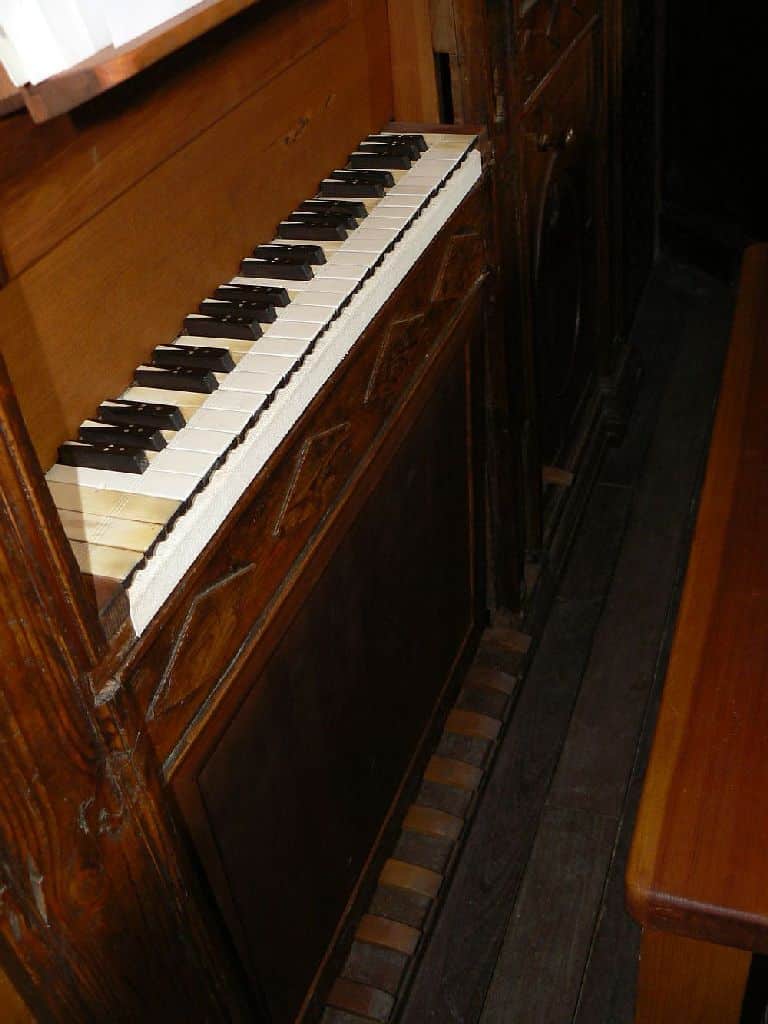 Manual: CDE-c3 Flautado Mayor 8′ (B/D), Violón 8′ (B/D), Octava 4′ (B/D), Docena 2 2/3′ (B/D), Nasardo en 12ª 2 2/3′ (bas), Quincena 2′ (bas), Nasardo en 15ª 2′ (bas), Nasardo en 17ª 1 3/5′ (bas), Nasardo en 15ª y 17ª 2′ + 1 3/5” (discant), Diecinovena 1 1/3′ (bas), Quincena y Diecinovena 2′ + 1 1/3” (discant), Corneta Magna 7 hilares (8′) (discant), Corneta de Eco 5 hilares (8′) (discant), Lleno 4 hilares (B/D), Cimbala 3 hilares (B/D), Trompeta Real 8′ (B/D), Clarín Claro 8′ (discant), Clarín de Campaña 8′ (discant), Bajoncillo 4′ (bas), Clarín 2′ (bas).