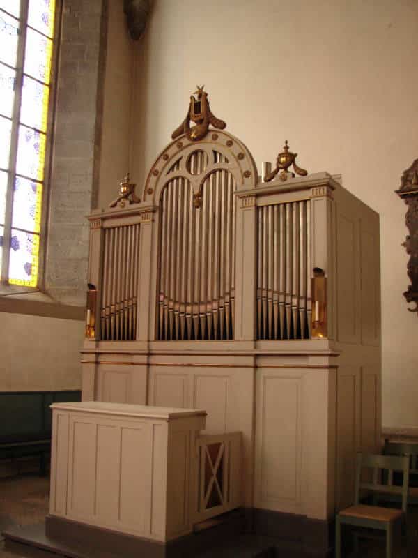 Manual (C-f3): 54 TOETSEN Borduna 16′, Principal 8′ (B/D), Rörflöjt 8′, Salicional 8′, Octava 4′, Trumpet 8′ (B/D).
