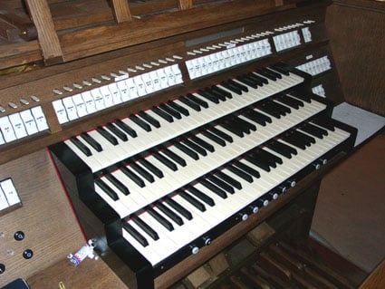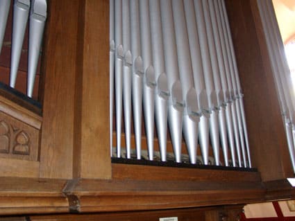 Fernwerk (koororgel, in zwelkast): C – g3 Prestant 8′, Viola da Gamba 8′, Vox Coelestis 8′, Holpijp 8′, Spilfluit 4′, Octaaf 4′, Quint 2 2/3′, Octaaf 2′, Dulciaan 8′, Tremulant.