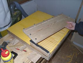 Niet alleen het klavier moest worden gereconstrueerd, ook het kleine zwelwerkje. Op foto boven is de windlade zichtbaar, en op foto onder de zwelkast compleet met zweldeurtjes. Er komen zo’n 7 registers in.