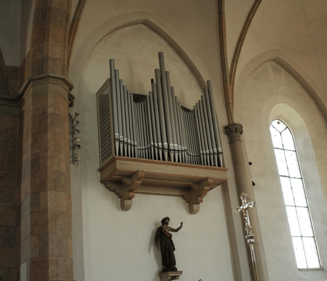 De parochiekerk van Waldkirchen (Bayern) Duitsland, liep schade op in de Tweede Wereldoorlog. Na herstel van een gedeelte van deze schade plaatste de firma Steinmeyer in 1948 een nieuw koororgel met elf stemmen, 1 manuaal, een vrij pedaal, elektro-pneumatische tractuur en taschenladen. Het instrument is later aangesloten op het vierde manuaal van het nieuwe hoofdorgel, dat in 1951 gebouwd werd door Eisenbarth. Dit hoofdorgel is in 2007 vervangen door een nieuw instrument. Het koororgel is hier opnieuw aan gekoppeld. Het koororgel heeft ook een eigen speeltafel.