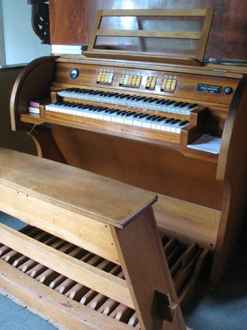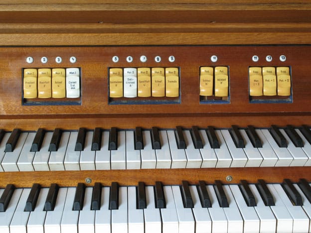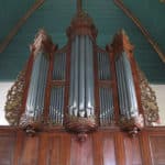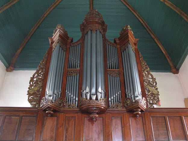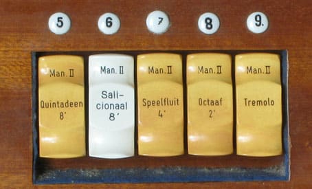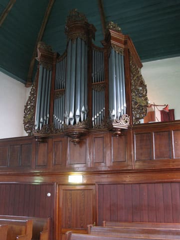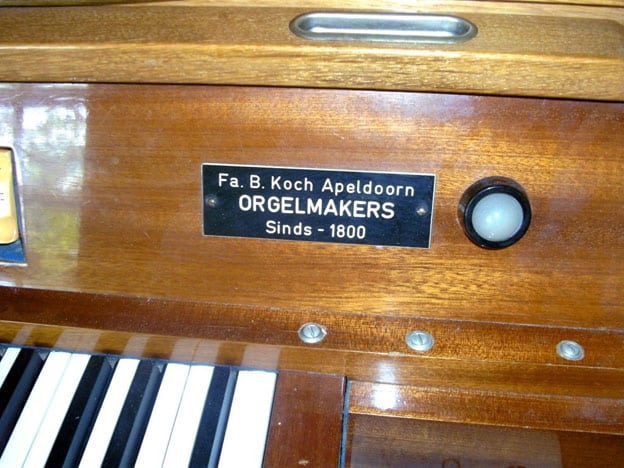 De dispositie van het Koch-orgel: (1971, met pijpwerk van Proper, 1911)