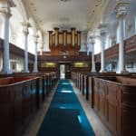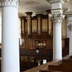 Swell: Open Diapason 8′, Viol di Gamba 8′, Celeste 8′, Hohl Flute 8′, Principal 4′ Stopped Diapason 8′, Nazard 2 2/3′, Fifteenth 2′, Mixture II (19.22), Cornopean 8′, Tremulant.