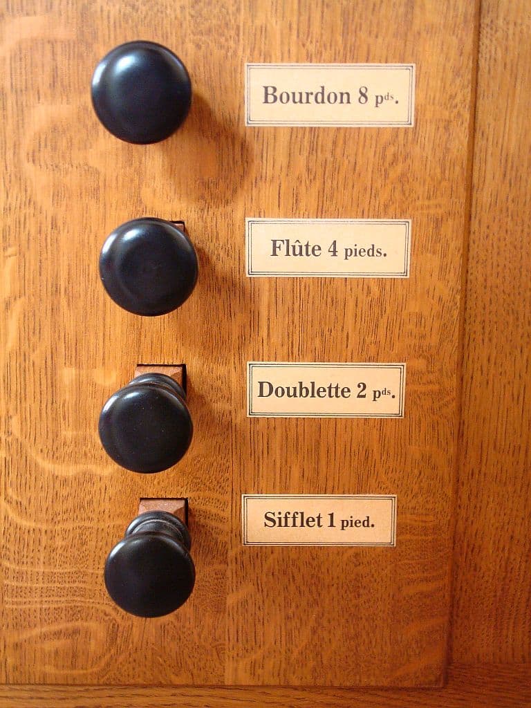 Manual: C – d3 Bourdon 8′ (bas), Flûte 8′ (discant), Flûte 4′ (B/D), Doublette 2′ (bas), Larigot 1 1/3′ (discant), Sifflet 1′ (bas