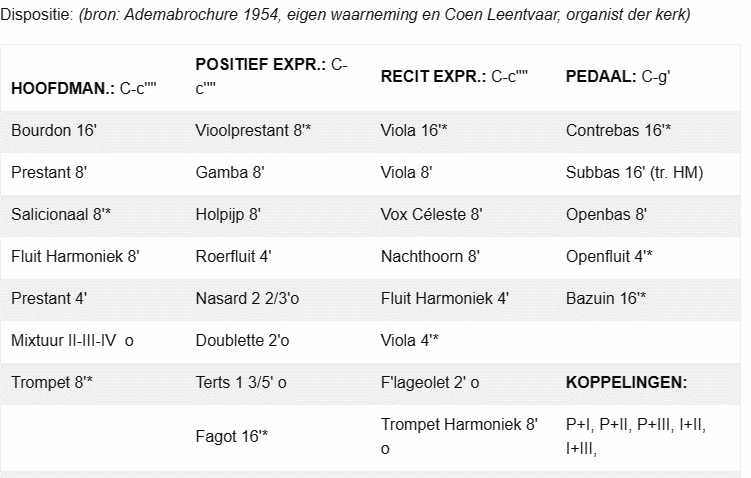 De firma Adema bouwde in 1935 een nieuw elektro-pneumatisch kegelladen-orgel voor de Kerk van de Heilige Johannes de Doper in Wateringen (Zuid-Holland). Het vervangt een kleiner orgel uit 1901 van dezelfde bouwer. Het instrument verkeert tegenwoordig in slechte staat, maar er zijn plannen voor restauratie.