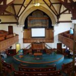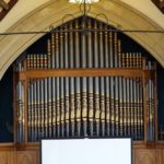 Pedal: C – f1 Open Diapason 16′ (Bevington), Bourdon 16′ A (Bevington), Quint 10 2/3′ A, Bass Flute 8′ A, Spare knob, Spare knob, Spare knob.