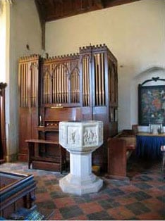 In the St Peter and Pauls Church in Wendling (Norfolk) is a small pipe-organ situated in the nave of the church. The tracker-organ with mechanical action is constructed by an unknown organbuilder. The frontpipes are dummy.