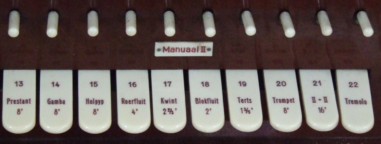- In het orgel zijn van Bätz aanwezig: een deel van de Prestant 8′, de Octaaf 4′, Octaaf 2′ en de Mixtuur van het Hoofdwerk. Van het Bovenwerk de Holpijp 8′, Roerfluit 4′ en de Quint 2 2/3′. De Viola di Gamba 8′ van Maarschalkerweerd is ook op het Bovenwerk opnieuw gebruikt. Adviseur bij de bouw was dr. C. Huigens. Deze stelde voor ook de Fluit Travers te gebruiken, en de naam Bätz op het orgel te vermelden, maar dat gebeurde niet.