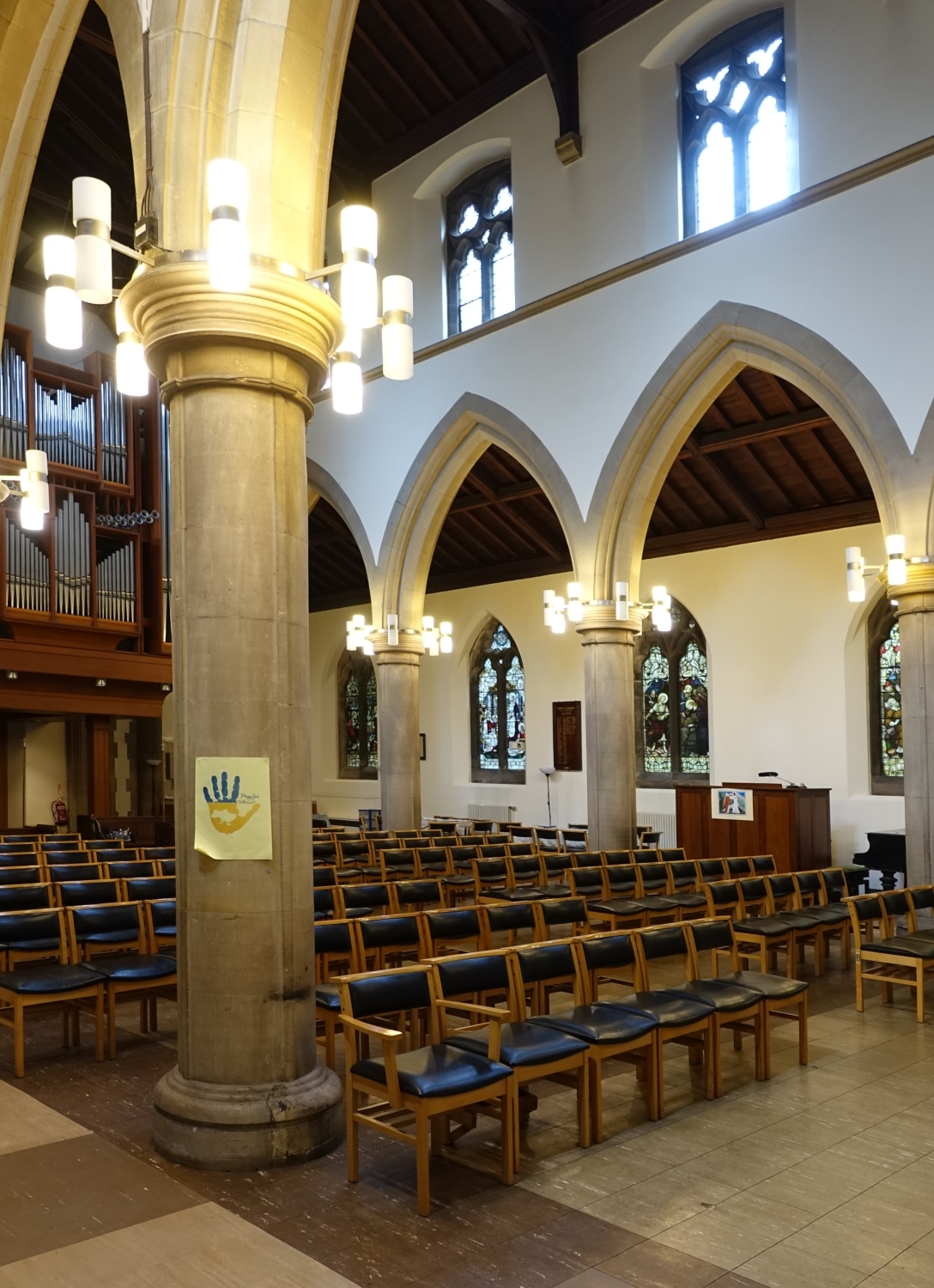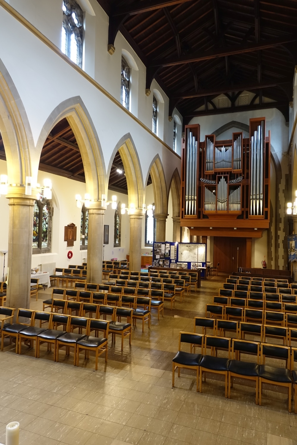 Swell: C – c4 (61 toetsen) in zwelkast Geigen 8′, Stopped Diapason 8′, Salicional 8′, Voix Celeste 8′, Principal 4′, Flute 4′, Gemshorn 2′, Tierce 1 3/5′, Plein Jeu III (22.26.29), Double Trumpet 16′, Trumpet 8′, Hautboy 8′, Clarion 4′.