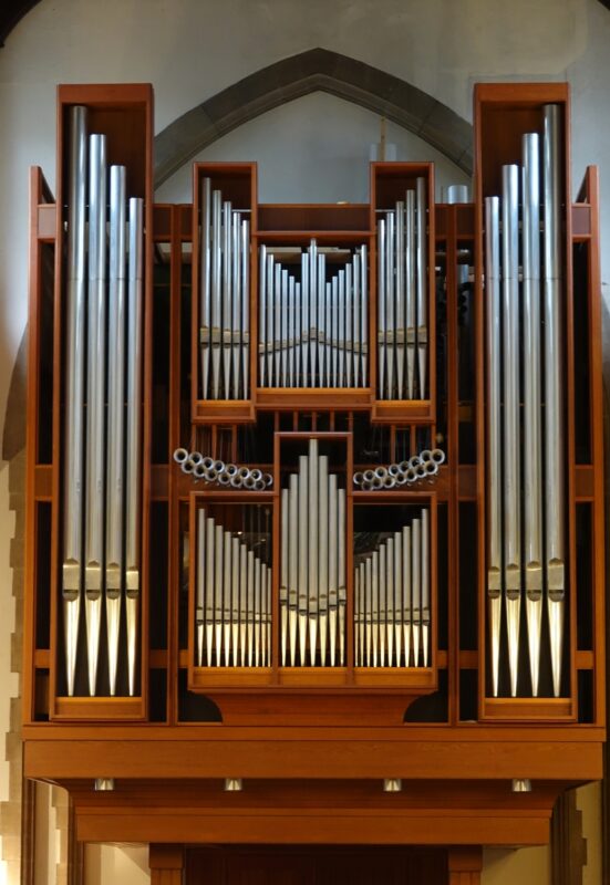 Koppelingen: Swell to Pedal, Swell unison off, Great to Pedal, Swell to Great 16, Swell to Great 8, Swell to Great 4, Swell to Great Unison Off, Swell to Swell 16, Swell to Swell 4, Swell off, Bombarde to Pedal, Bombarde to Great, Bombarde to Swell, Midi to Pedal, Midi to Great, Midi to Swell.