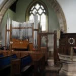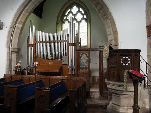 In 1878 bouwde J.M. Grunwell uit Derby een nieuw mechanisch sleepladen-orgel voor de Church of Saint Helena in West Leake (Nottinghamshire) Engeland. Het pedaalklavier is radiaal.