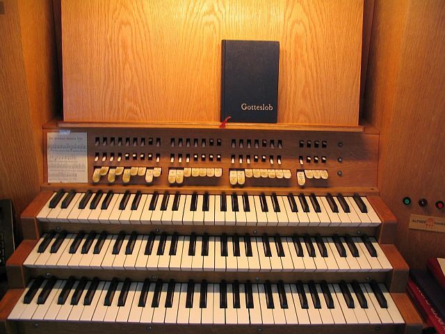 Couplers: Hauptwerk – Brustwerk, Hauptwerk – Chorpositiv, Pedal – Hauptwerk, Pedal – Brustwerk, Pedal – Chorpositiv.