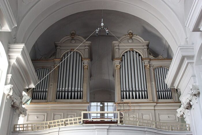 I. MANUAL (C – g3) 56 TOETSEN: Bordun 16′, Prinzipal 8′, Gedeckt 8′, Gamba 8′, Oktave 4′, Rohrflöte 4′, Mixtur 4 fach (2 2/3′).