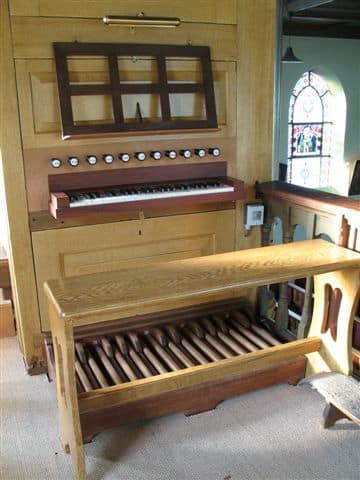 Manuaal: C – f3 Bourdon 16′, Prestant 8′, Hohlflöte 8′, Gamba 8′ – C-H gecombineerd met Hohlflöte, Salicional 4′, Flöte 4′, Quint 3′ – 2000, Waldflöte 2′, Dulcian 8′ – 2000, Tremulant.
