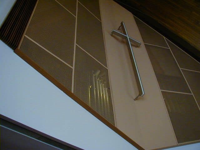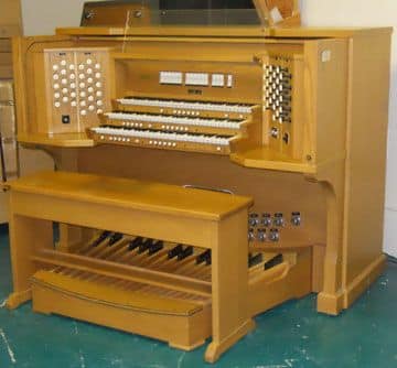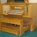 Swell Organ: C – c4 Gedeckt 16′ – unit, Principal 8′, Gedeckt 8′, Viola Celeste 8′, Viola 8′, Octave 4′, Rohr Gedeckt 4′, Nazard 2 2/3′, Gemshorn 2′, Bassoon 16′ – unit, Trumpet 8′, Oboe 8′, Clarion 4′ – unit, Tremulant.