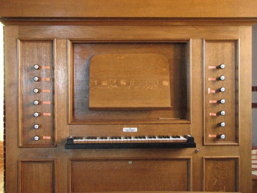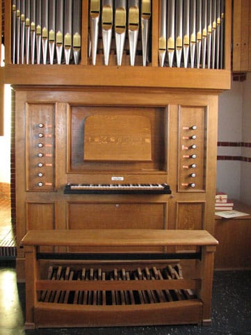 | Manuaal: (C-f3) Prestant 8 Roerfluit 8 B/D Oktaaf 4 Fluit 4 Nasard 3 B/D Oktaaf 2 Cornet 3 st. Dulciaan 8 (gereserveerd) Tremulant |