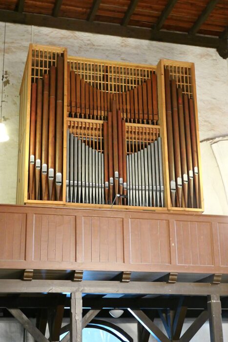 OBERWERK (C – g3) 56 TOETSEN: Gedackt 8′, Rohrflöte 4′, Oktave 2′, Sifflöte 1′, Zimbel 3 fach, Krummhorn 8′.