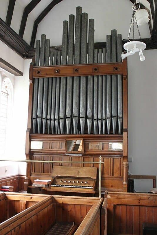 In 1880 bouwde de firma Bevington & Sons een nieuw mechanisch sleepladen-orgel voor de Church of St. Michael in Woodham Walter. Met uitzondering van de Open Diapason 8′ staat al het pijpwerk van het manuaal in een zwelkast.