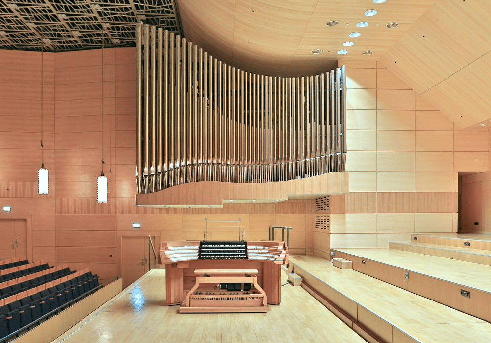 Het orgel werd gebouwd in twee fasen, met het vierde klavier en een deel van het pedaal gepland maar niet gerealiseerd in 2016. Het oorspronkelijke plan werd veranderd en het hele orgel werd in 2024 volledig herbouwd en is in feite een groot unitorgel geworden met transmissies, extensies en synthetische registers. De synthetische registers combineren verschillende basisregisters om een nieuw geluid te produceren.