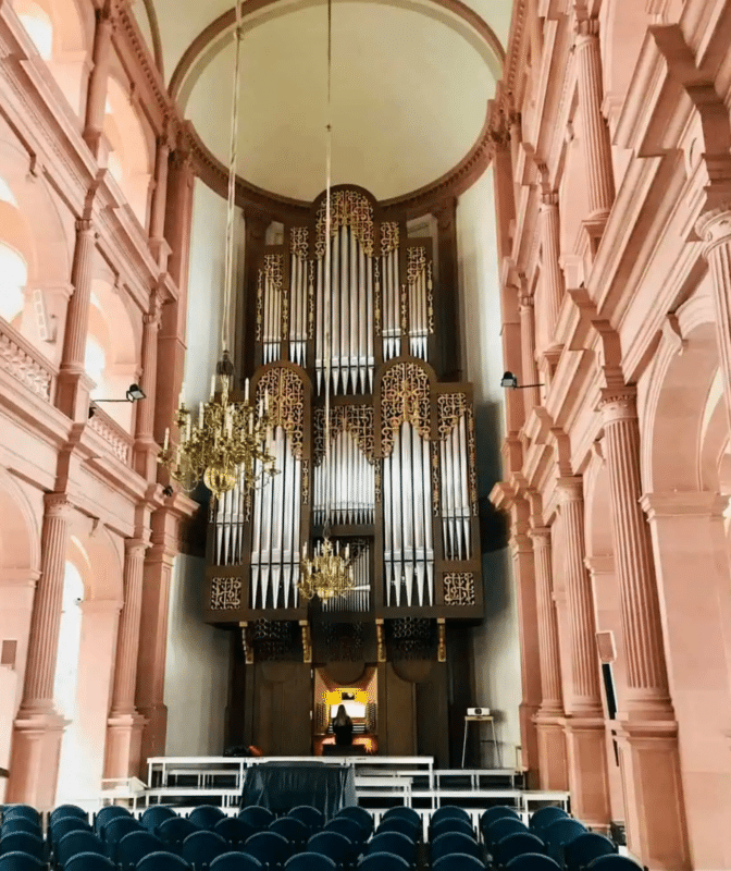 Karl Schuke uit Berlin bouwde in 1986 een nieuw sleepladen-orgel met mechanische toetstractuur, elektrische registertractuur, 64 stemmen, 4 manualen en een vrij pedaal voor de Neubaukirche (Universitätskirche) in Würzburg (Bayern) Duitsland.