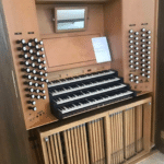SCHWELLWERK (C – c4) 61 TOETSEN: Gedackt 16′, Principal 8′, Rohrflöte 8′, Gambe 8′, Vox Coelestis 8′, Flûte Octaviante 4′, Viola 4′, Quinte 2 2/3′, Octavin 2′, Terz 1 3/5′, Sifflöte 1′, Mixtur 6 fach, Bombarde 16′, Trompette Harmonique 8′, Hautbois 8′, Vox Humana 8′, Clairon Harmonique 4′.