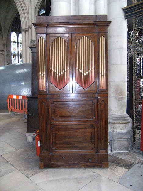 In het jaar 1801 bouwde de firma Lincoln & Son een mechanisch kamerorgel met sleepladen. Het is tot 1948 in bezit geweest van een onbekende particulier. In 1948 kocht Noel Mander het instrument en plaatste het in zijn eigen huis. In 1953 is het in de York Minster geplaatst. De Flute 4′ is toen vervangen door een Fifteenth 2′.