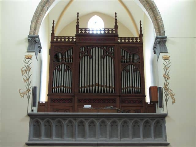 Grand Orgue: C – g3 Bourdon 16′, Montre 8′, Bourdon 8′, Prestant 4′, Flûte d’Echo 4′, Doublette 2′, Fourniture 3 rangs.