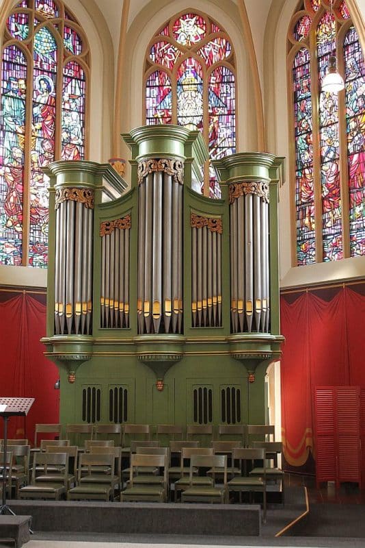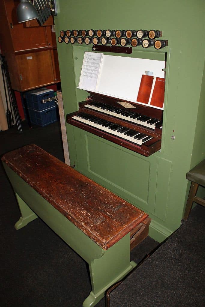 Hoofdwerk: Prestant 16′, Prestant 8′, Bourdun 8′, Violda Gamba 8′, Prestant 4′, Flöth 4′, Quint 3′, Octav 2′, Mixtur 4 fach (1 1/3′), Trompet 8′ (gedeeld) – 1890.